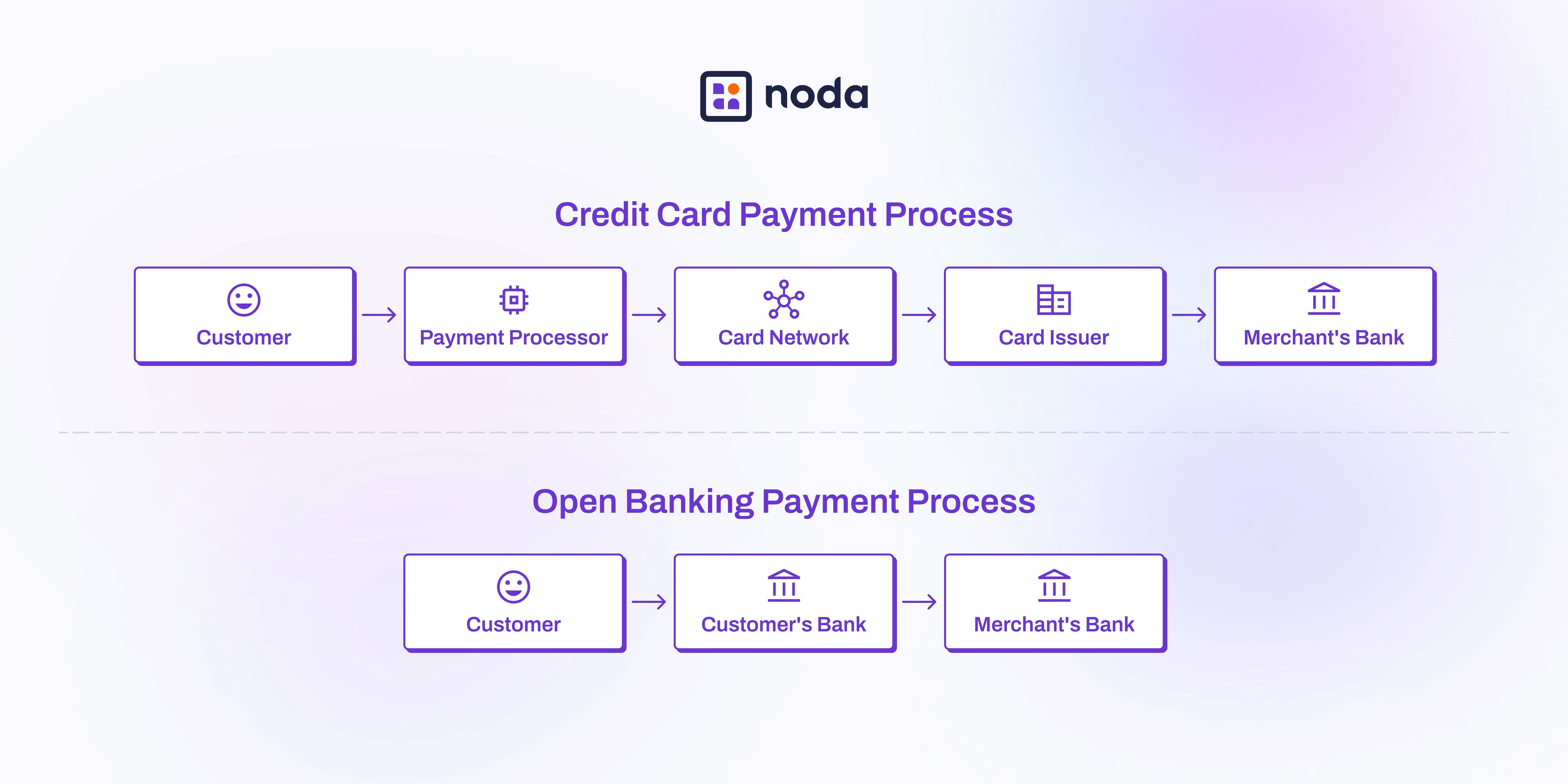 | Open Banking Payments | Typically, lower than 1%, varies by provider. With Noda, fees start from 0.1% for transaction | Instant or near-instant | Strong customer authentication (SCA), direct bank integration, tokenization |