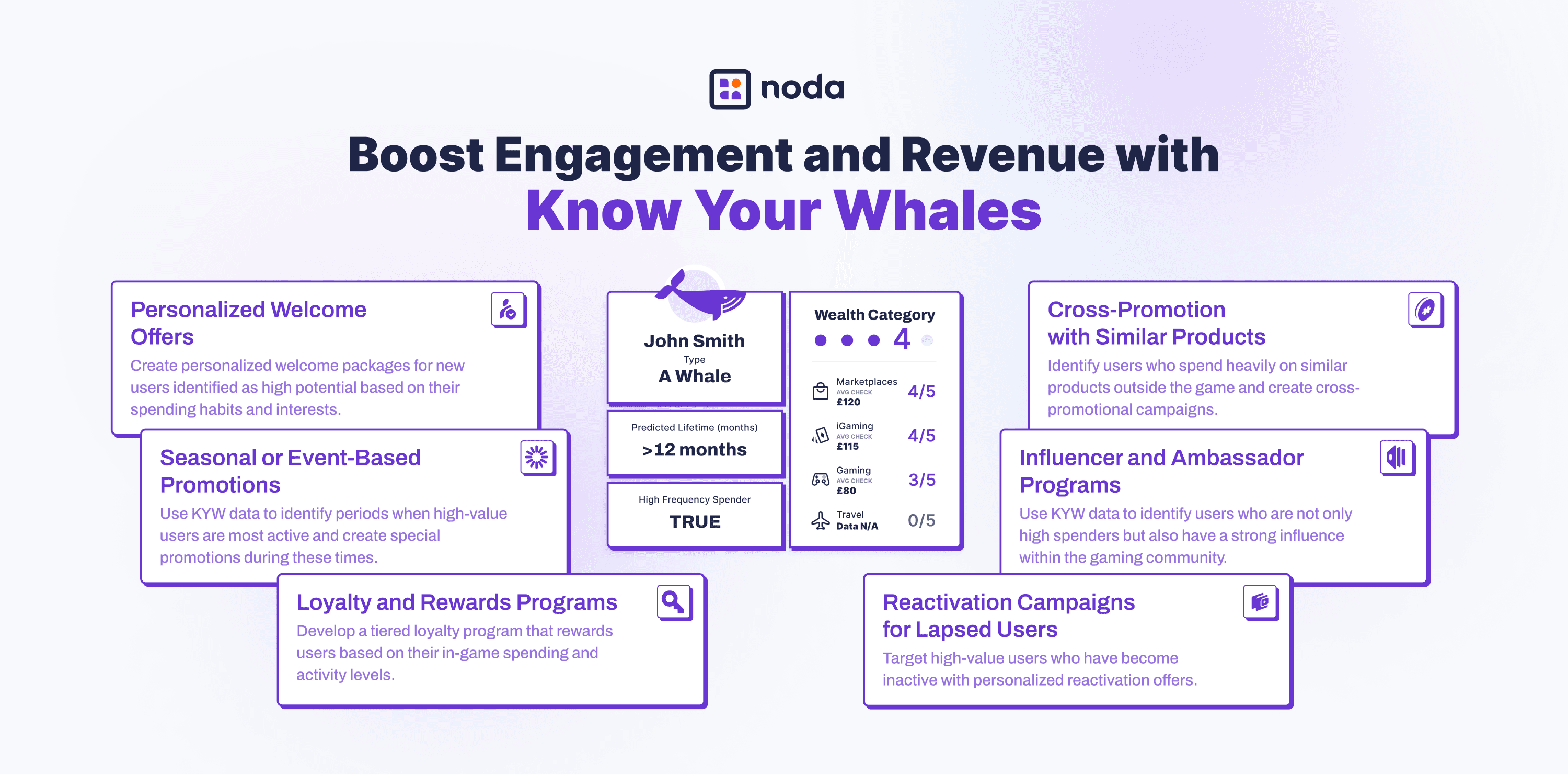 With this enriched data provided by KYW marketing teams can craft campaigns to engage high-potential users. In practice, this could look like email re-targeting, custom offers and additional bonuses. For example, if an online gaming company was using this tactic, they could offer exclusive in-game items and early access to new features for users who were high spenders in similar digital domains.