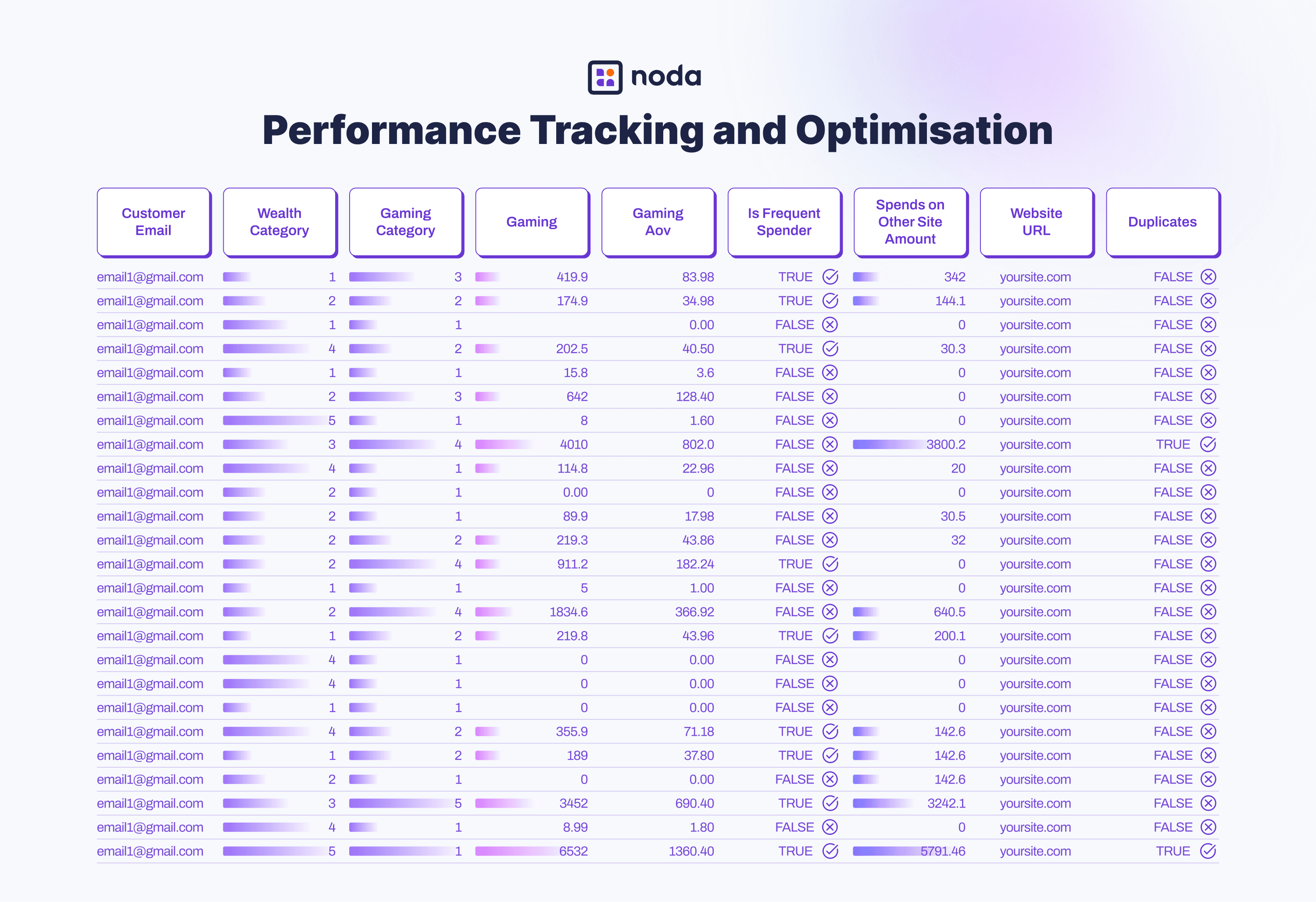 Leveraging Noda’s KYW can help merchants tailor marketing strategies, craft targeted campaigns for high-value clients and improve a wide range of metrics. The data-driven approach can also strengthen customer loyalty to your brand and fuel your business growth.